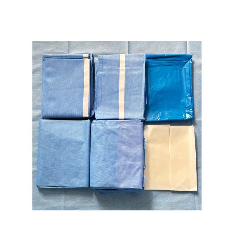 1. Drape, 175*160cm, 40g SMS-kangas, kinnitatud 2cm175cm kahepoolse teibiga, 1 tk 2. Drape Leht: 240150cm, 40g SMS-kangas, kinnitatud 2cm240cm kahepoolse teibiga, 1tk 3. Drape: 9075 cm, 40 g SMS-kangas, kinnitatud 2 cm90 cm kahepoolse teibiga, 2 tükki 4. Meiya teip: 145*78cm, 1 tk 5. Meditsiiniline teip: 10*50cm, 2 tk 6. Kirurgiline kleit: 130*150 cm, 40 g SMS-kangast, 2 tükki 7. Meditsiiniline rätik: 40*40 cm, 70 g pärlpuuvilla, 2 tükki 8. Mähkimisriie: 100*100cm, 35g SMS-kangas, 1 tükk |